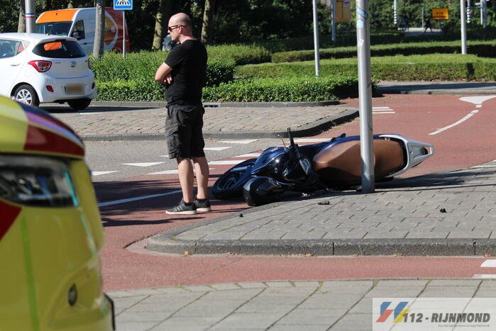 Een scooterrijder en automobilist zijn door onbekende oorzaak in botsing gekomen. De scooterrijder kwam ten val en raakte hierdoor gewond. Een toevallig passerende zorgambulance verleende eerste hulp tot de komst van een ambulanceteam die het slachtoffer hebben vervoerd naar een ziekenhuis.