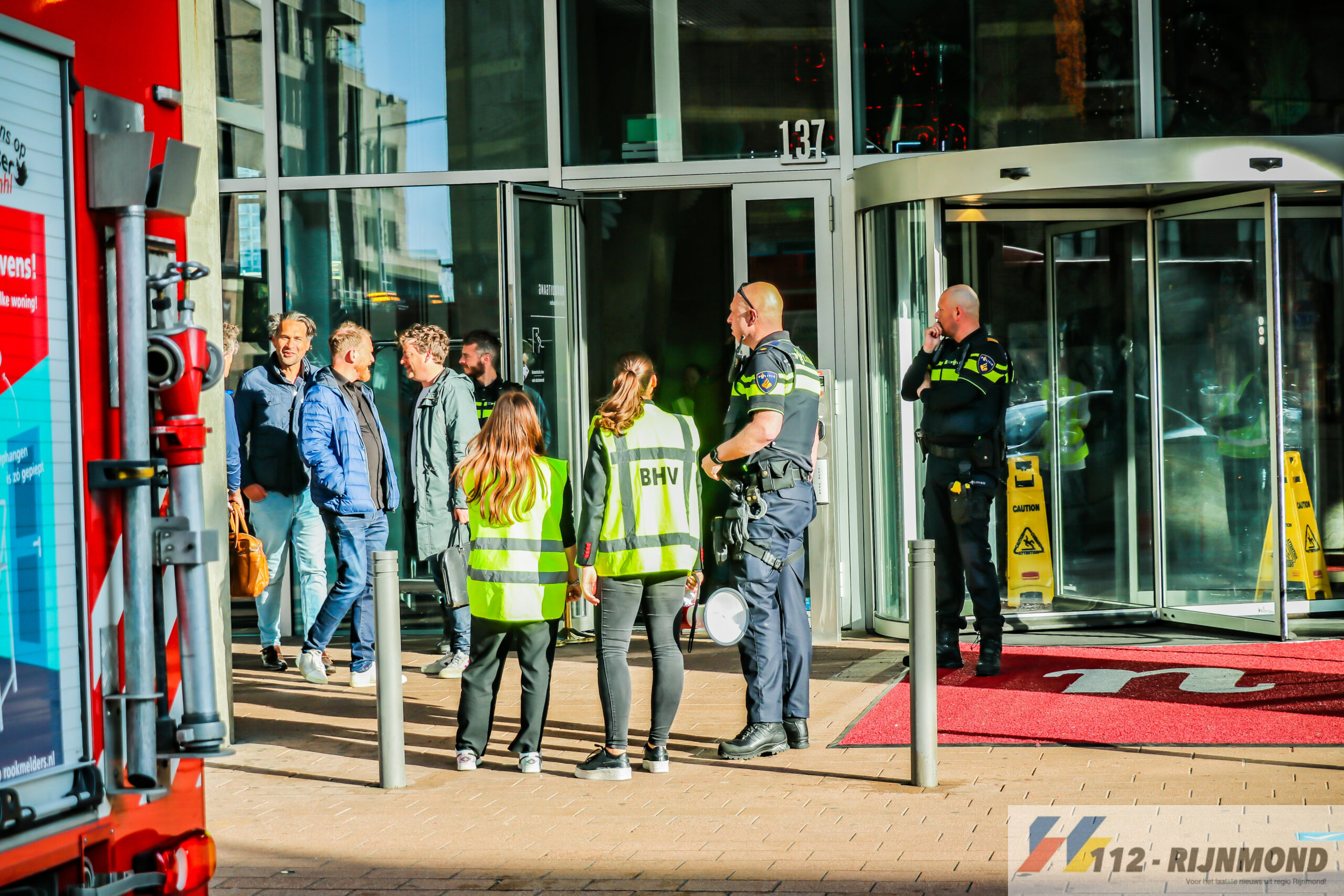Bij aankomst van de brandweer kwam er rookontwikkeling uit een hotelkamer op de 21ste verdieping en bleek dat de BHV al de naastgelegen kamers had ontruimd. De brandweer schaalde voor extra materiaal op naar middelbrand.