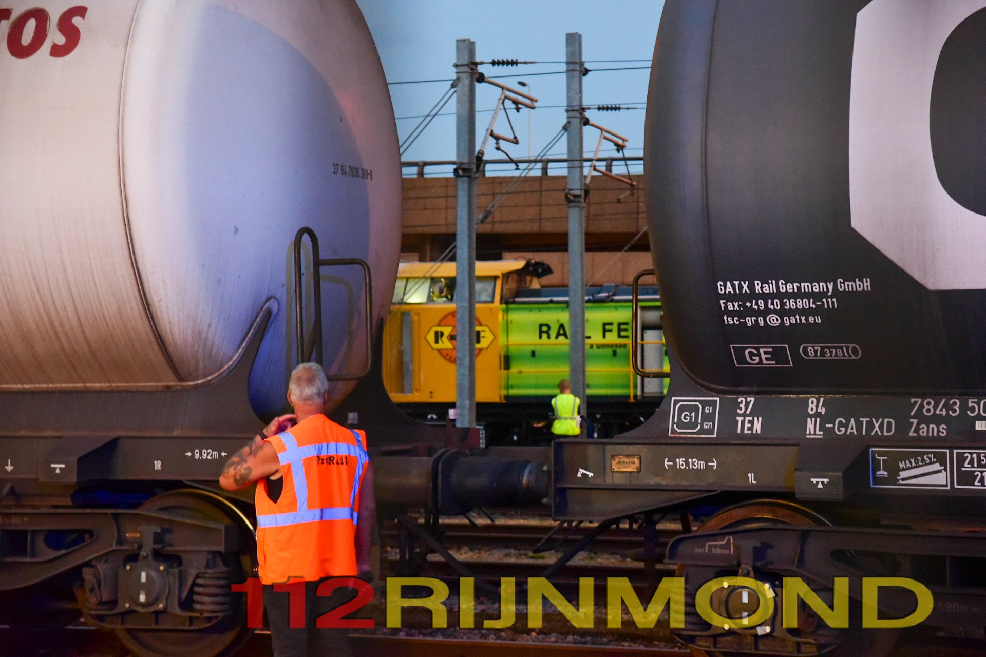 De trein stond op het moment van het uitbreken van de brand langs de A15 in de Europoort. De machinist heeft een eerste bluspoging gedaan tot de brandweer ter plaatse was.