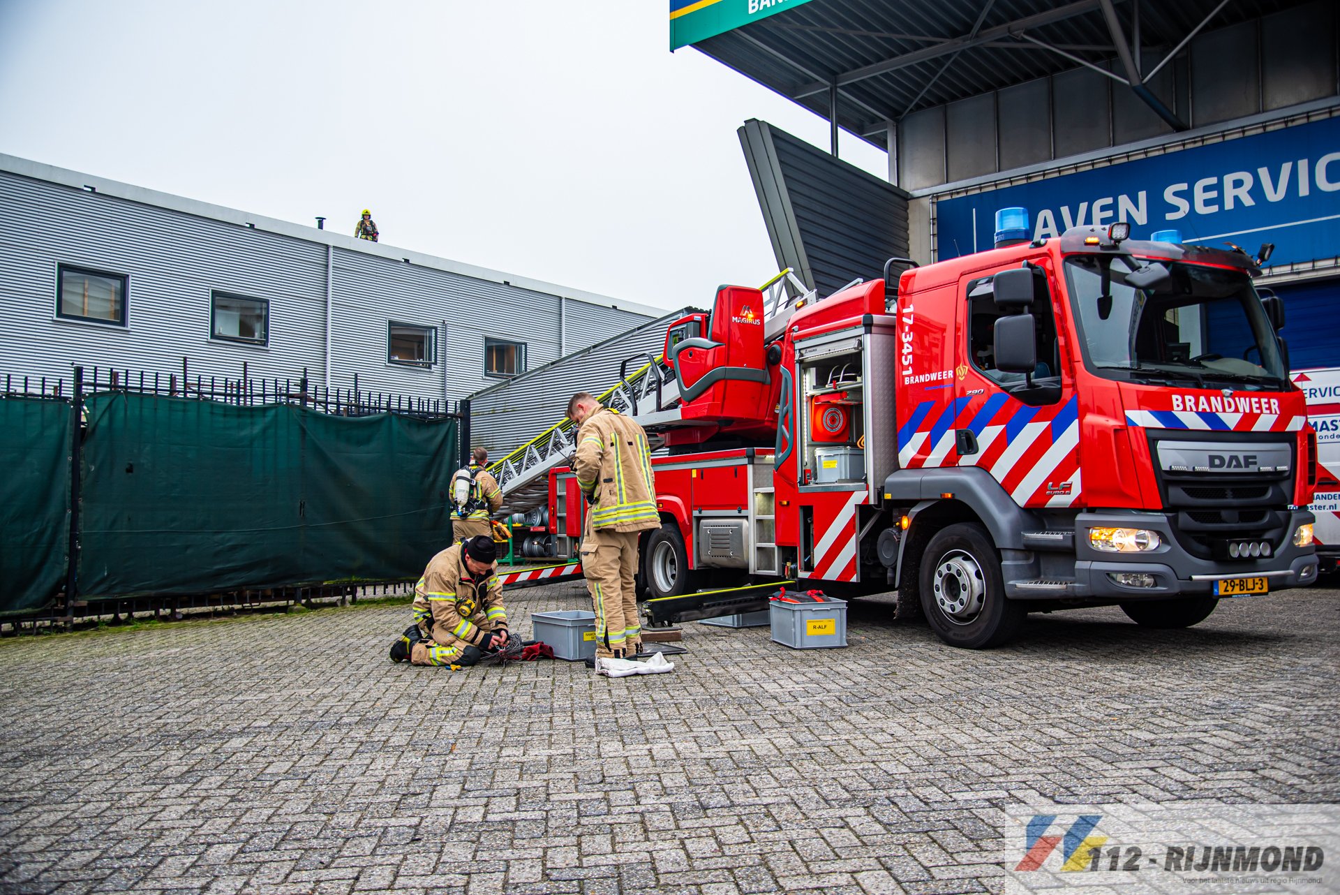 Medewerkers van een onderhoudsbedrijf waren op het dak van een bedrijfspand bezig toen ze opeens zwarte rookontwikkeling zagen komen uit een tegenovergelegen bedrijfspand. De medewerkers belde meteen de brandweer.