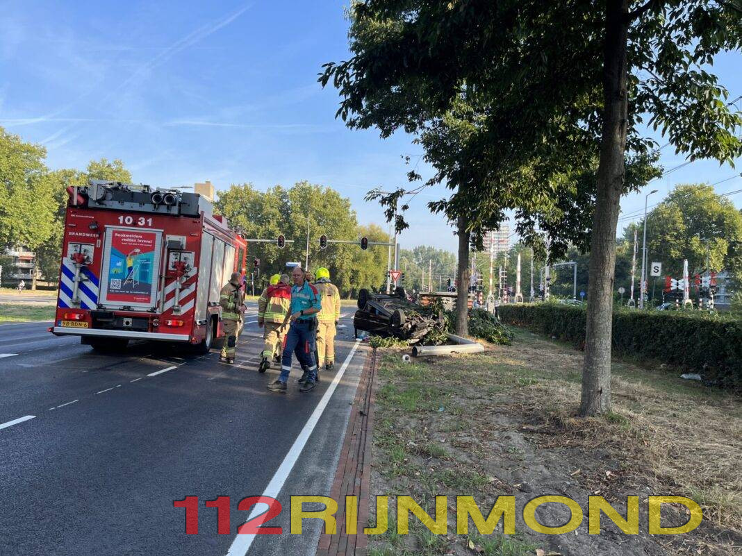 Rotterdam – een automobilist is vanmorgen op de Prins Alexanderlaan met zijn auto over de kop geslagen.
