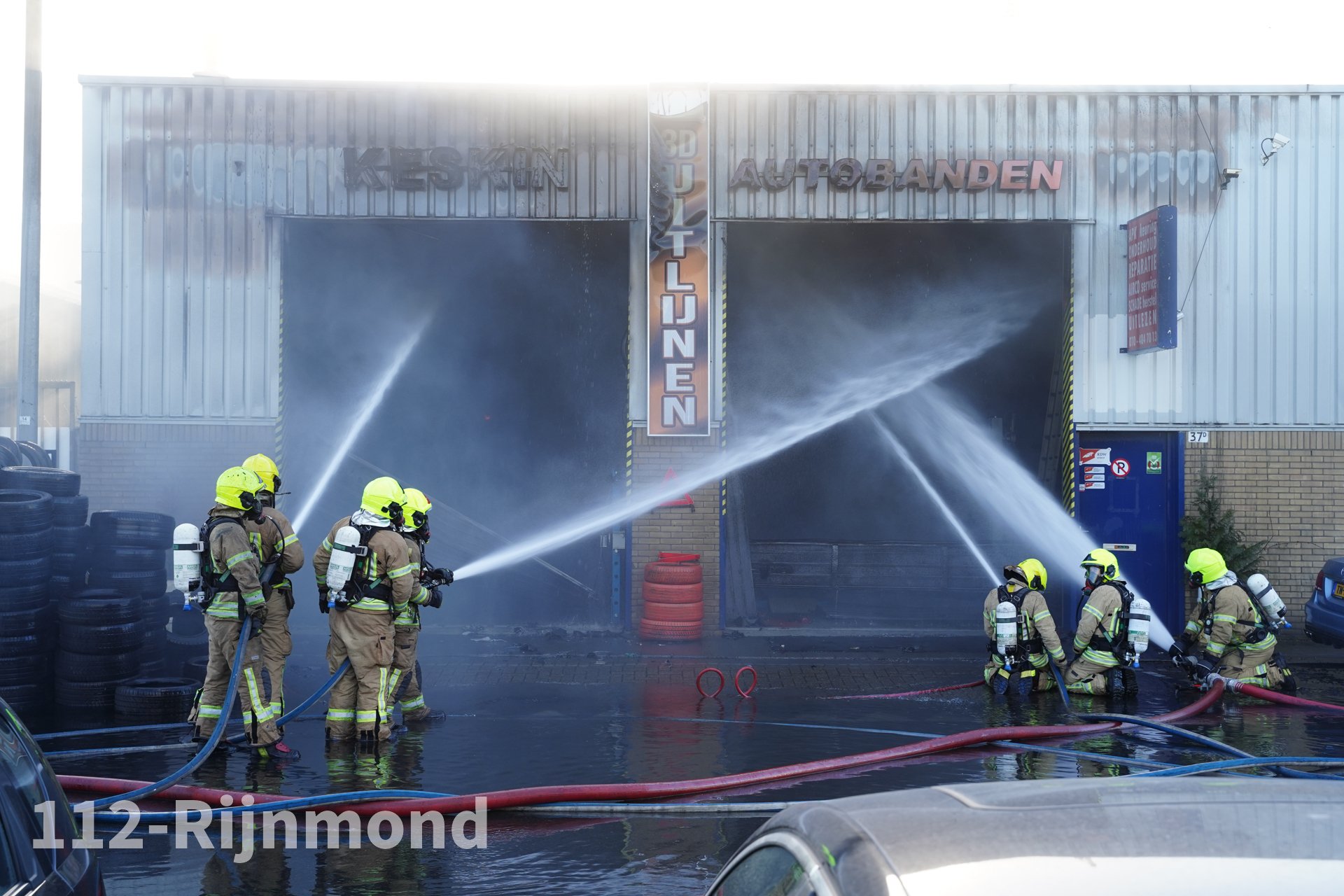 In het pand zitten drie bedrijven gevestigd. De brand is uitgebroken bij ‘Keskin autobanden’, de overige twee bedrijven hebben rookschade. De brandweer is nog altijd druk bezig het vuur te bestrijden. Een deel van het bedrijf zou ingestort zijn. Er zouden geen gewonden zijn gevallen volgens de laatste informatie.