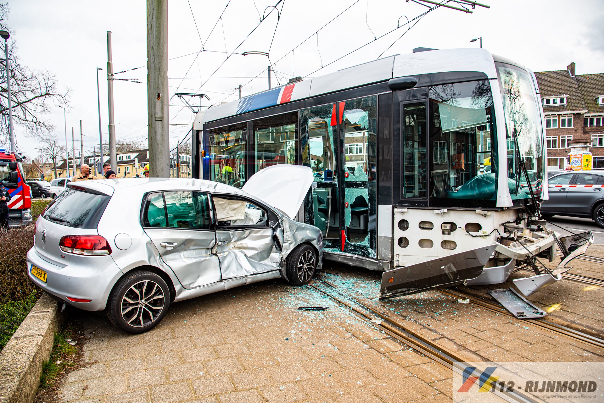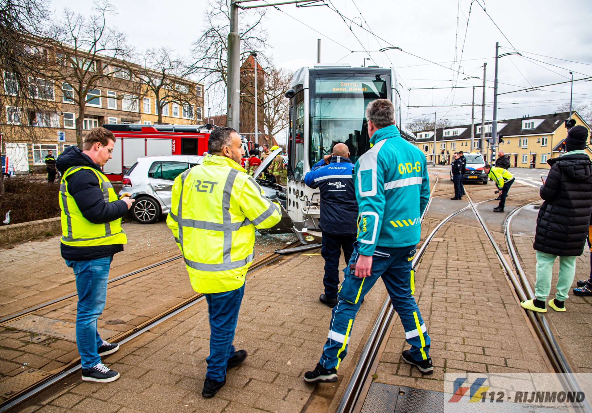 Rotterdam – Op het Breeplein zijn dinsdagmiddag 14 maart een auto en tram op de kruising met de Randweg in botsing gekomen.