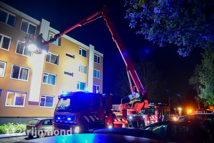 Een bewoner vluchten vanwege de rookontwikkeling naar het balkon en moesten met een hoogwerker van de brandweer naar beneden worden gehaald.