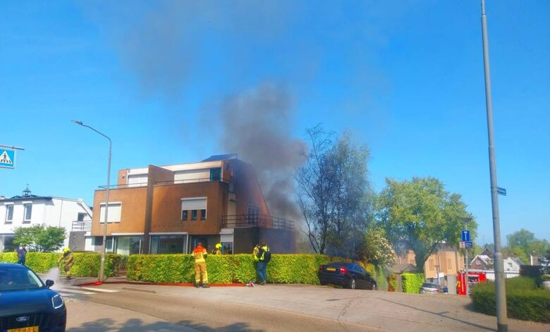 Bij aankomst van de brandweer rond 13.15 uur was er sprake van flinke rookontwikkeling. De brandweer schaalde voor de inzet van extra materiaal op naar middelbrand, waarna al snel grote brand volgde.