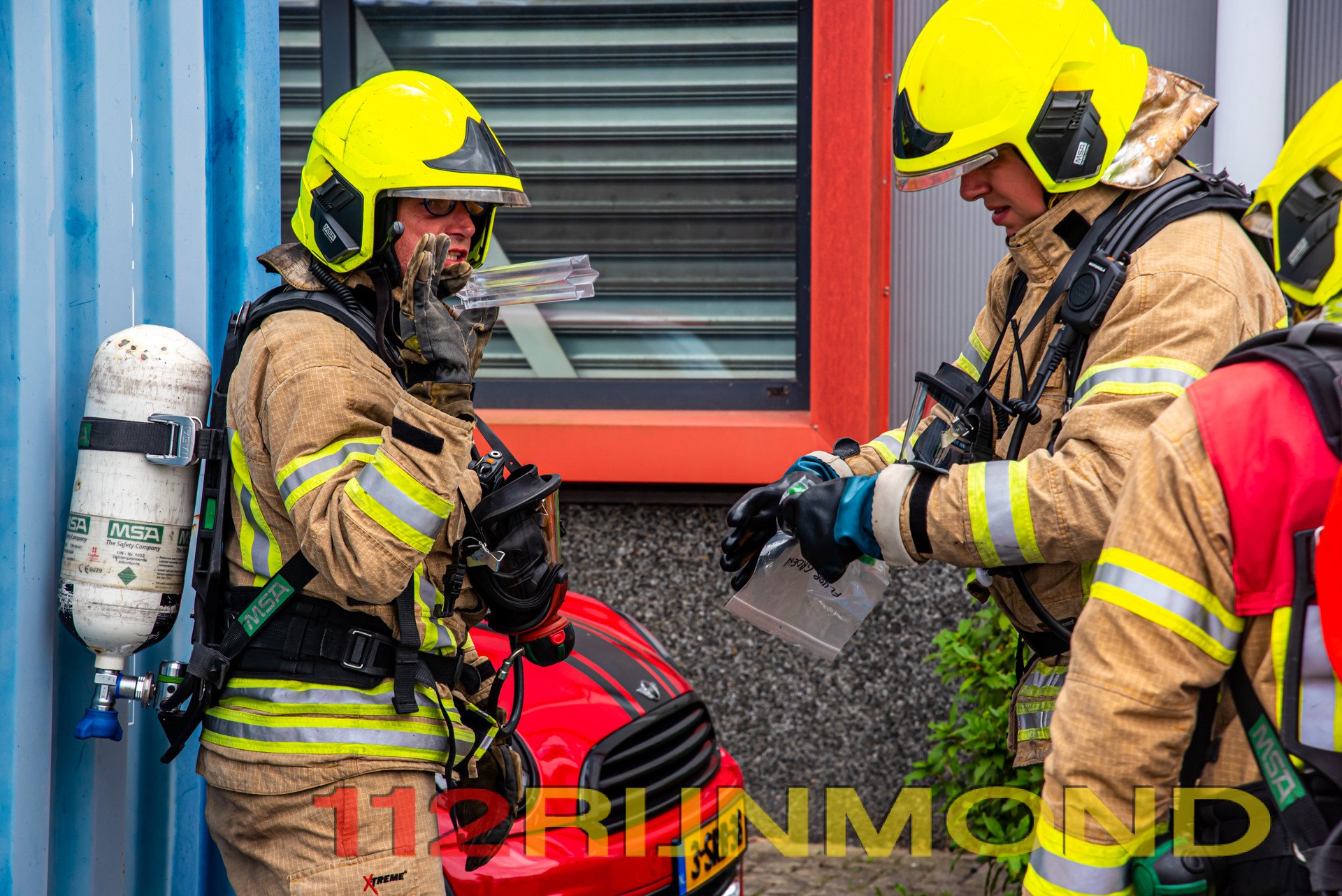 De politie was daar ter plaatse i.v.m. de dumping van afval op de parkeerplaats van een bedrijf. Omdat de politie vermoeden dat er mogelijk gevaarlijke stoffen in de tassen zouden zitten, werd de brandweer ter plaatse gevraagd.