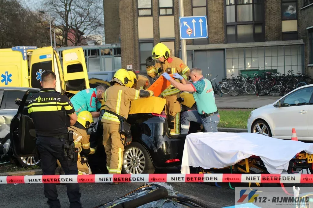 Brandweer bevrijdt automobilist na flinke aanrijding | G.J. de Jonghweg Rotterdam