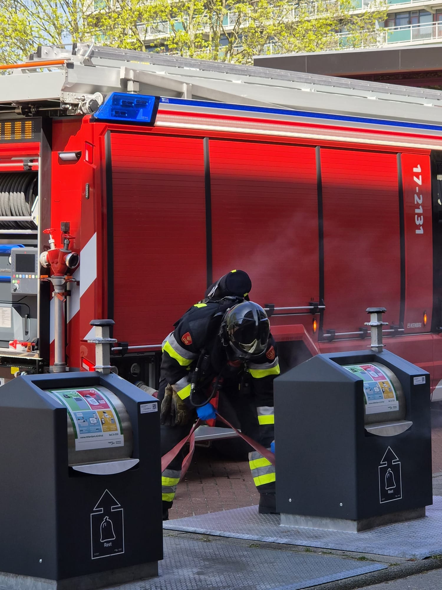 Brandweer blust brand in ondergrondse container | Slaghaam Hoogvliet