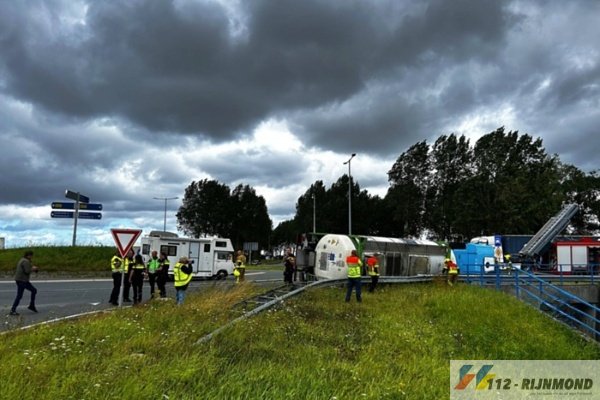 Tankwagen kantelt op rotonde | Dammenweg Hellevoetsluis