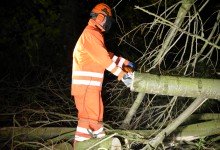 Ter plaatse bleek op een pikkedonker fietspad in een bos door de storm een boom om te zijn gewaaid. Omdat de boom het fietspad blokkeerde heeft de brandweer de boom door midden gezaagd en weggehaald.
