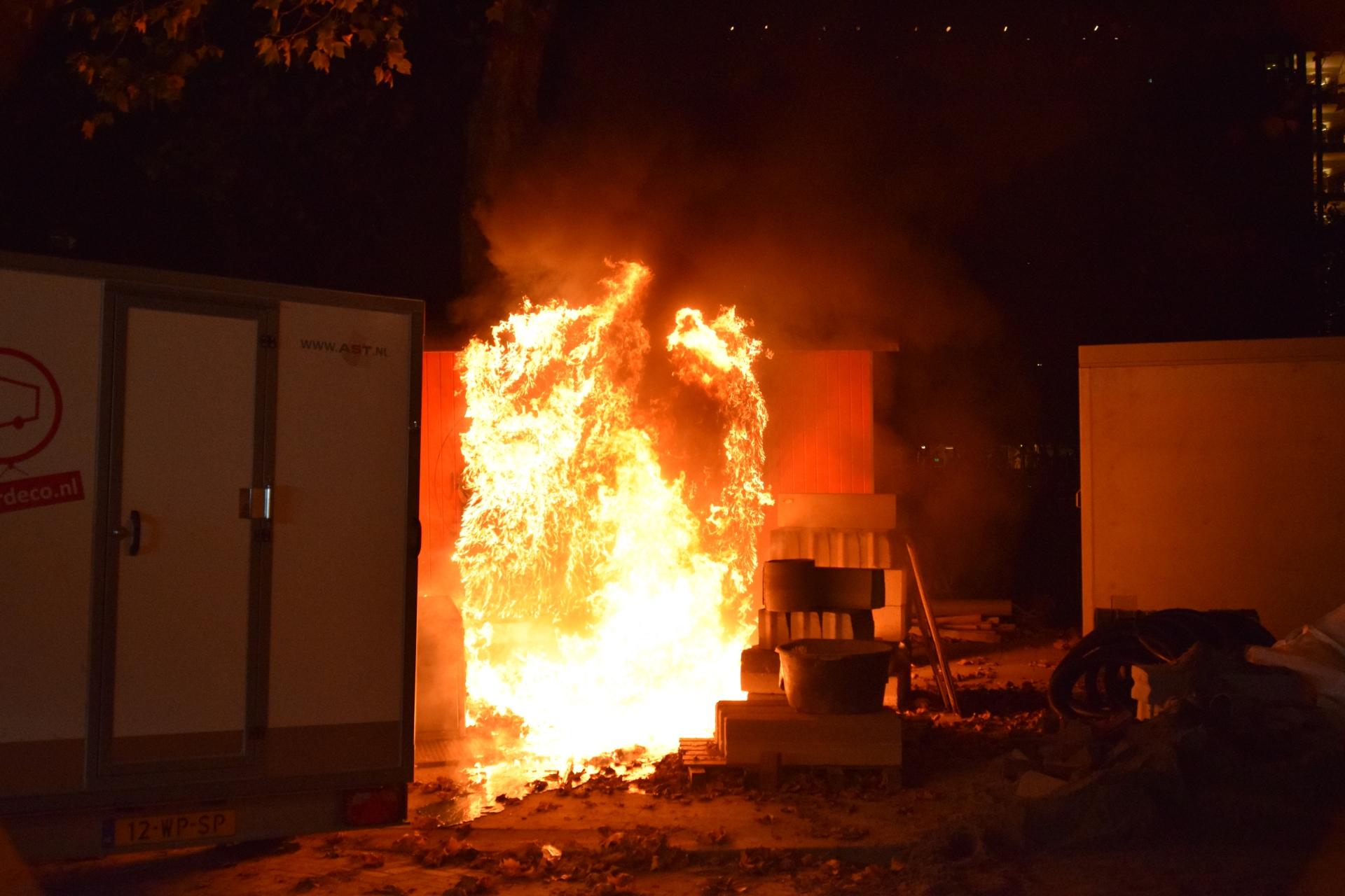 Bouwkeet beschadigd en Dixi toilet verwoest door brand Diergaardesingel Rotterdam