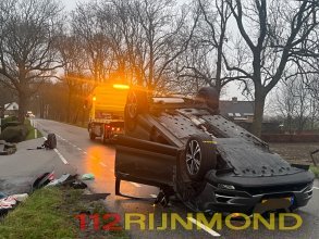 Auto op zijn kop na botsing met drie voertuigen | Middelsluissedijk Oostzijde Numansdorp