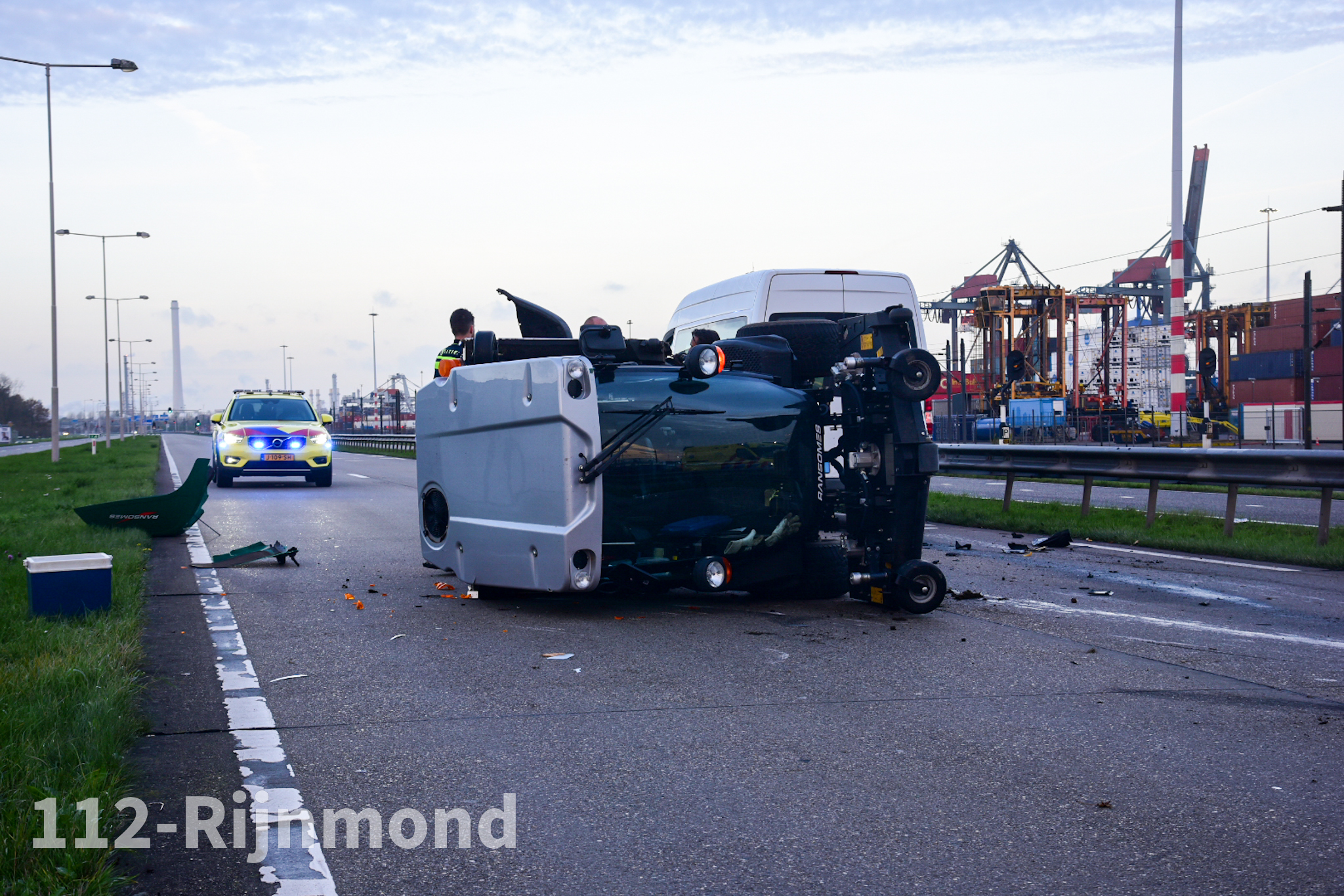 Chauffeur grasmaaier gewond na botsing met taxibus | Vondelingenweg Rotterdam