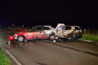 2 Auto’s vliegen in brand na botsing met elkaar | Simonshaven