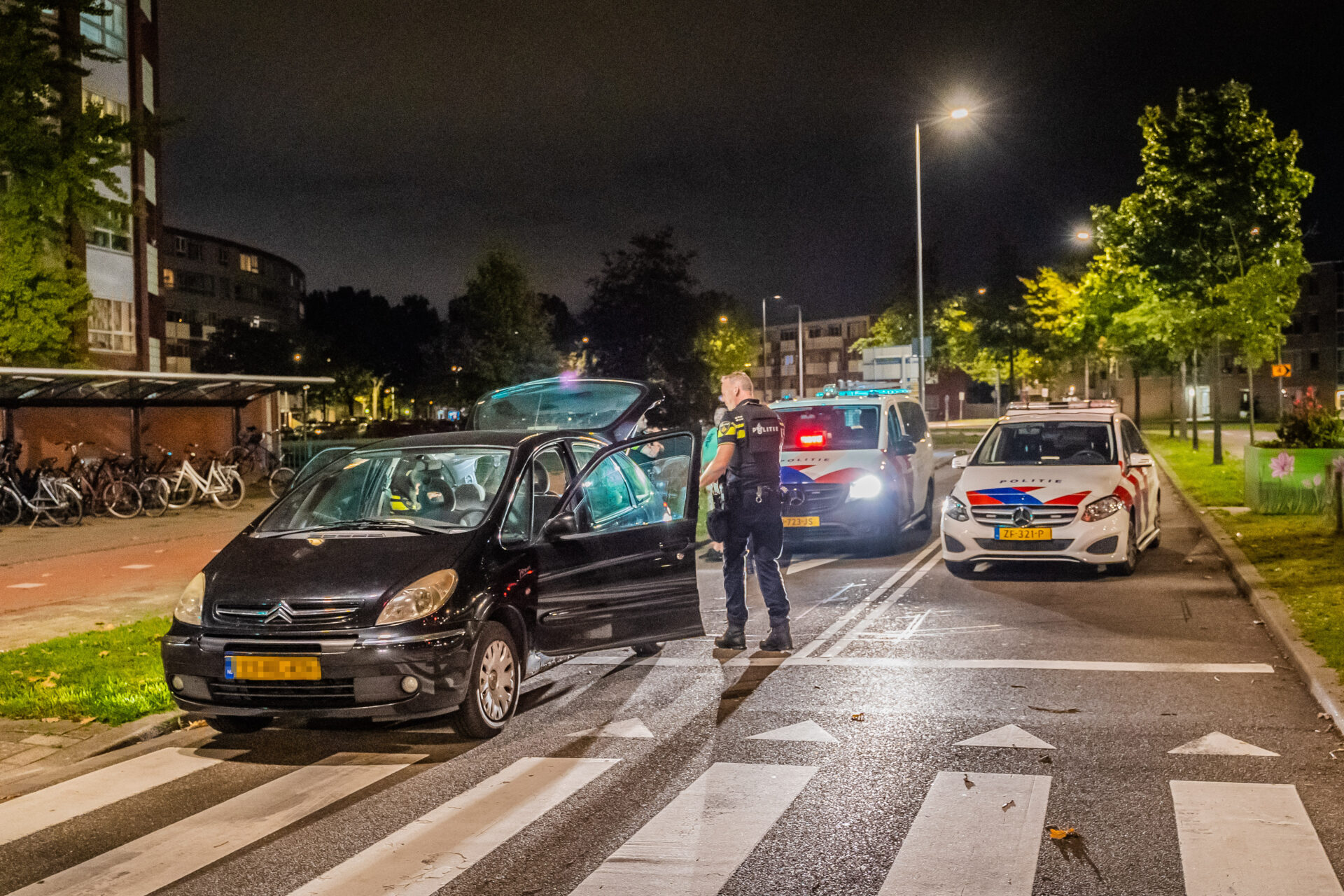 Agenten in zware vesten doorzoeken auto na vuurwapen melding | Evenaar Rotterdam