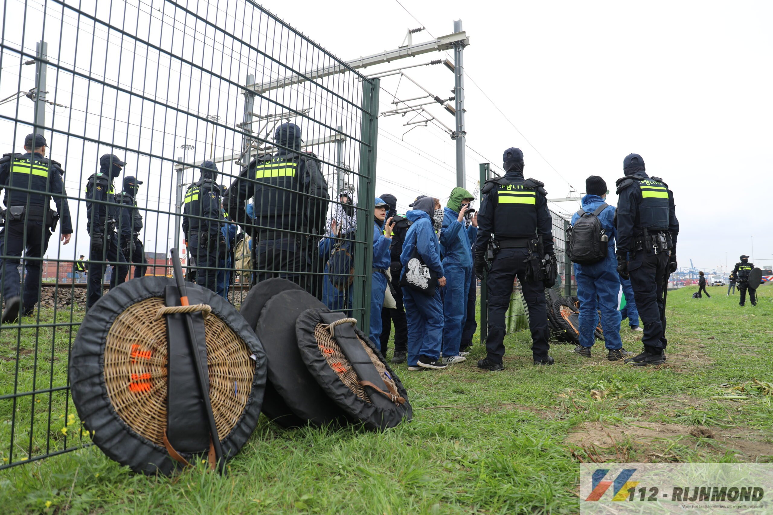 Pernis Rotterdam – In de late ochtend van zaterdag 11 oktober rond 10.45 uur werd aan de Slotsedijk in Pernis Rotterdam een demonstratie vastgesteld op het spoor van de haven van Rotterdam.