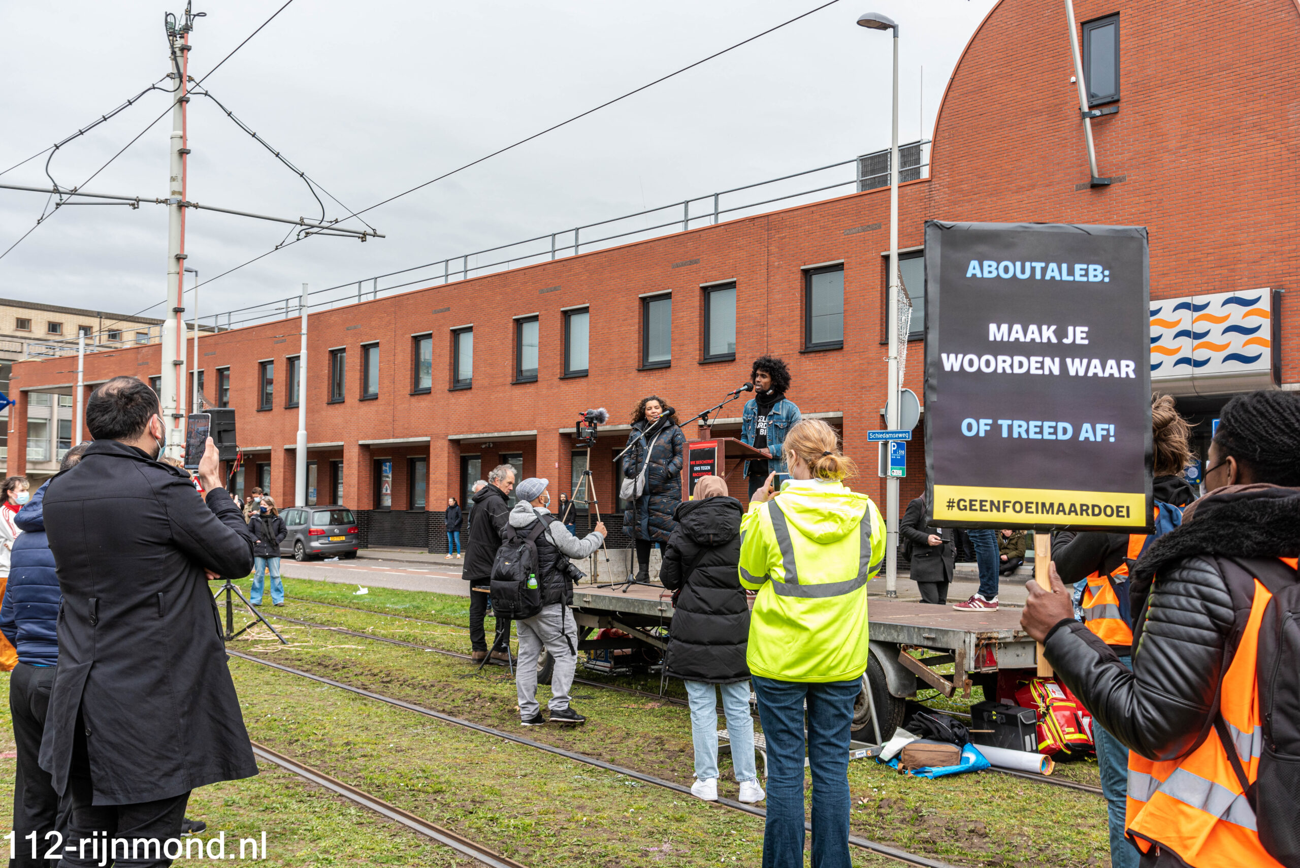 ROTTERDAM – Zondagmiddag 28 maart rond 14.00 uur is een demonstratie gestart tegenover het politiebureau aan het Marconiplein.