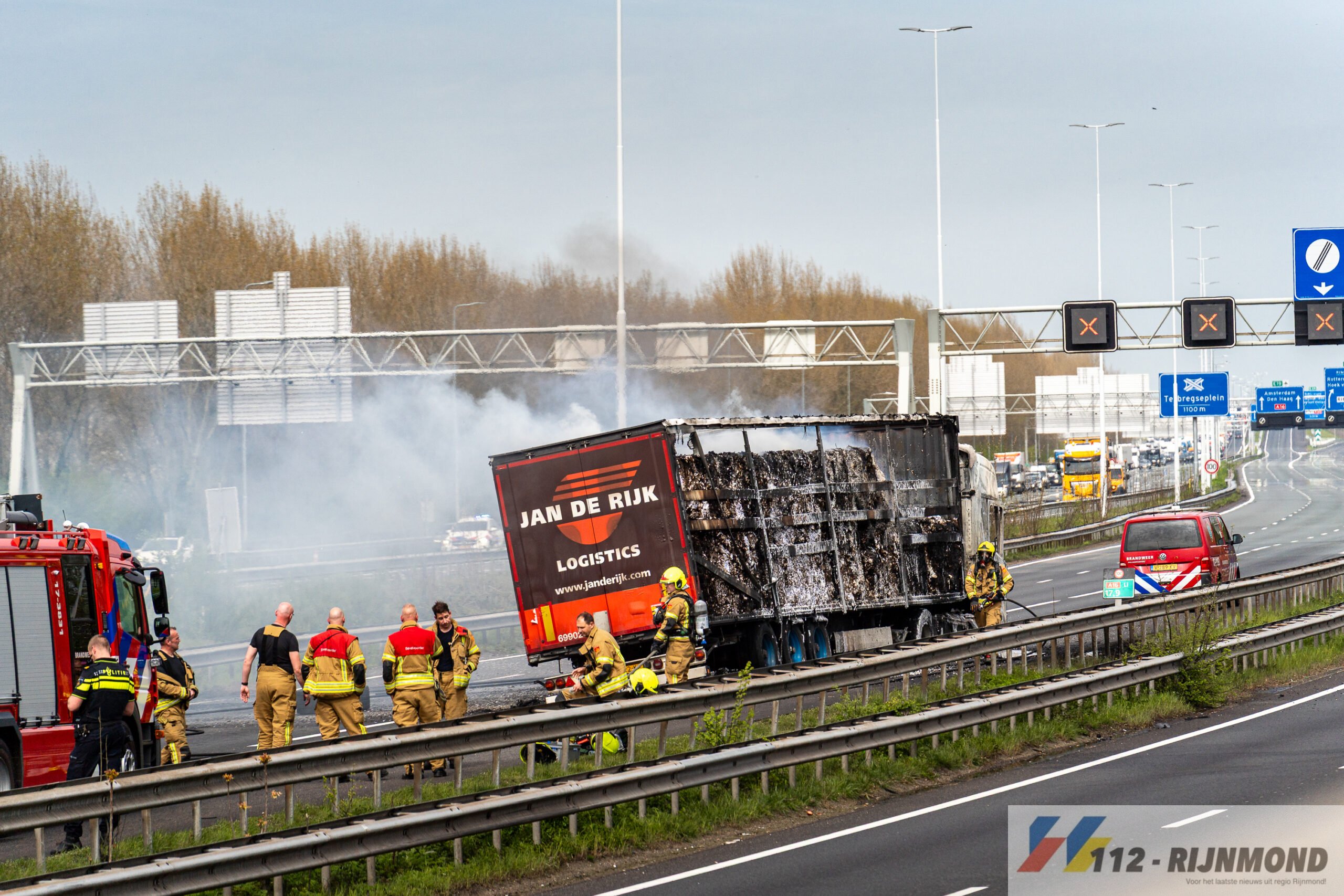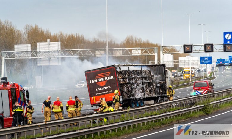 Rotterdam – Op de A16 is donderdagmiddag 9 april rond 12.30 uur brand uitgebroken in een vrachtwagen.