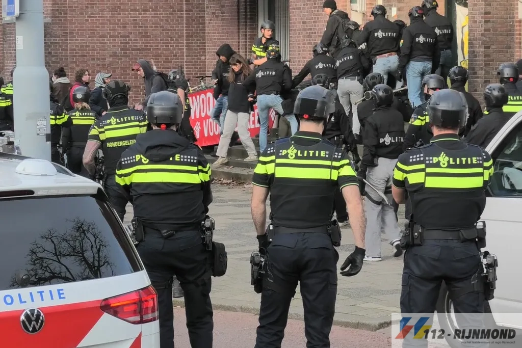 Een groep van de Bond Precaire Woonvormen Rotterdam had een leegstaand gebouw gekraakt. De politie kwam rond 15.30 uur met meerdere eenheden na het pand om de krakers eruit te halen.