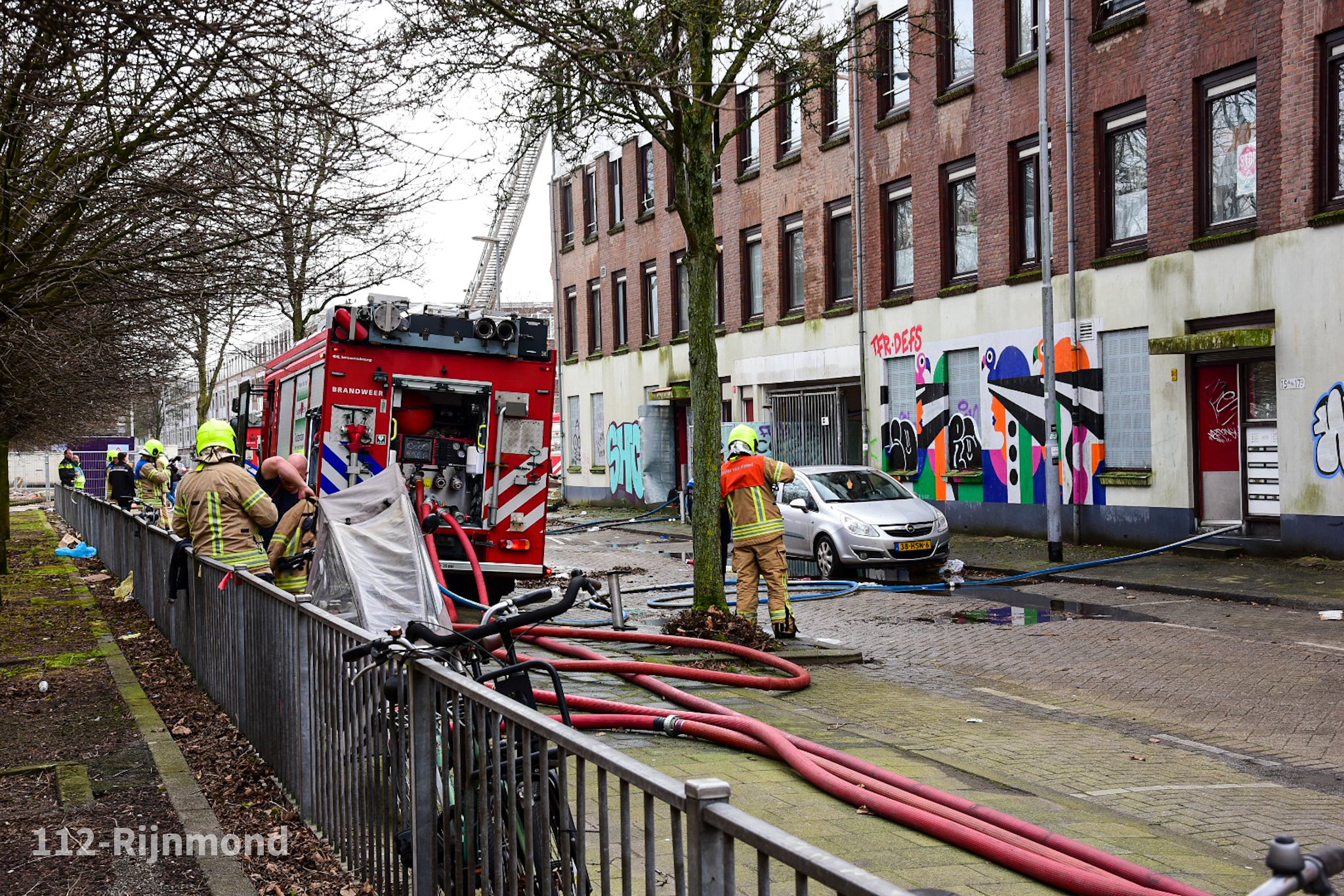 Bij aankomst van de brandweer kwam uit het pand veel rookontwikkeling. De brandweer schaalde op naar het sein ‘grote brand’ waardoor meerdere blusvoertuigen de brand kwamen bestrijden. Drie personen werden door het ambulancepersoneel gecontroleerd, twee personen werden overgebracht naar het ziekenhuis.
