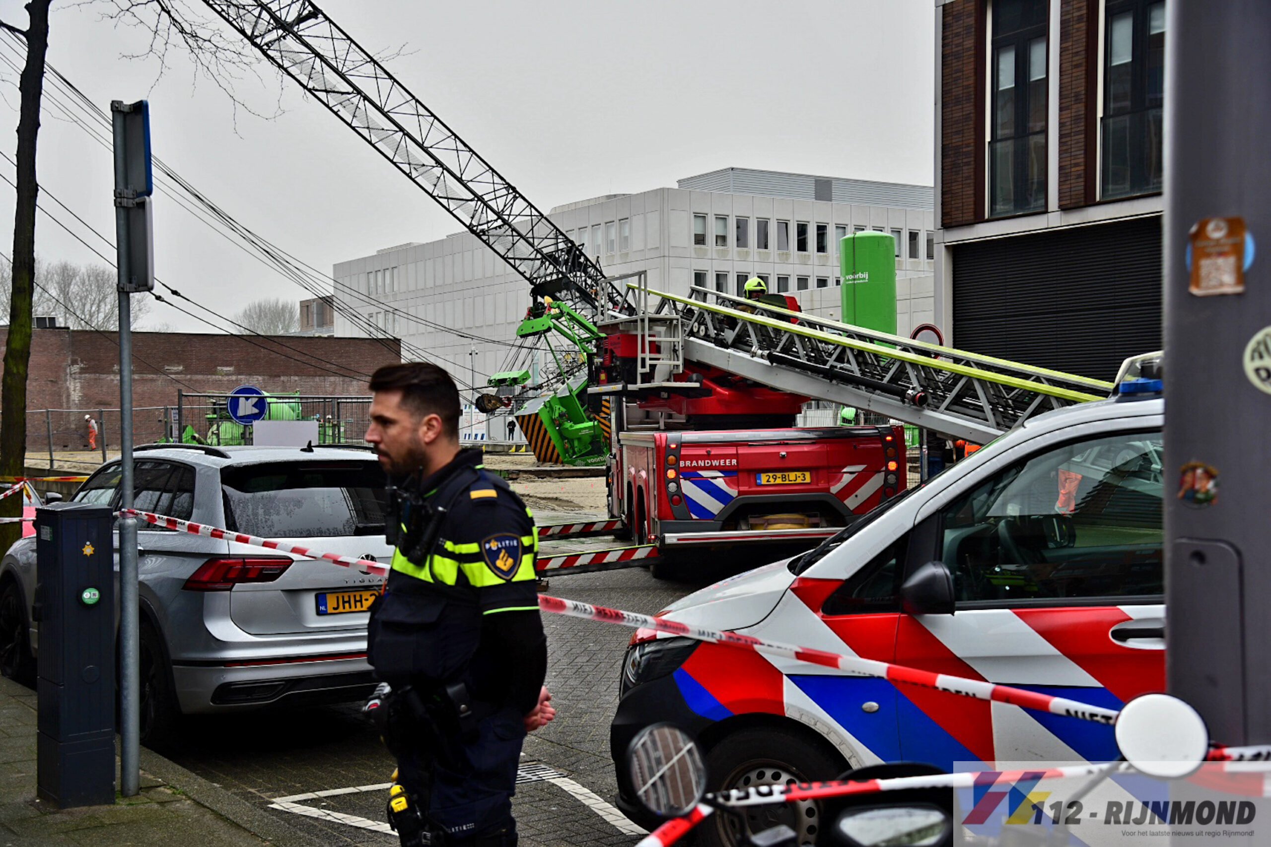 Een bouwkraan voor heiwerkzaamheden viel rond 12.30 uur om en kwam hierbij op een kantoorpand terecht. Hulpdiensten waaronder de brandweer en ambulancedienst rukte met spoed uit om hulp te verlenen.