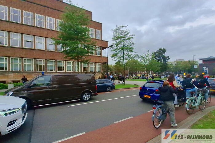 Daarnaast is het arrestatieteam ingezet. Dader is mogelijk op weg op motorfiets. Draagt gevechtskleding, is lang, heeft zwart haar en is midden 20. Hij draagt een rugzak en heeft een handvuurwapen.