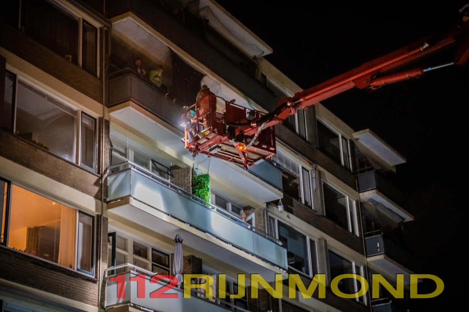 Omdat de bewoners op het balkon stonden, is de brandweer met een hoogwerker omhoog gegaan om instructies te geven aan de bewoners.
