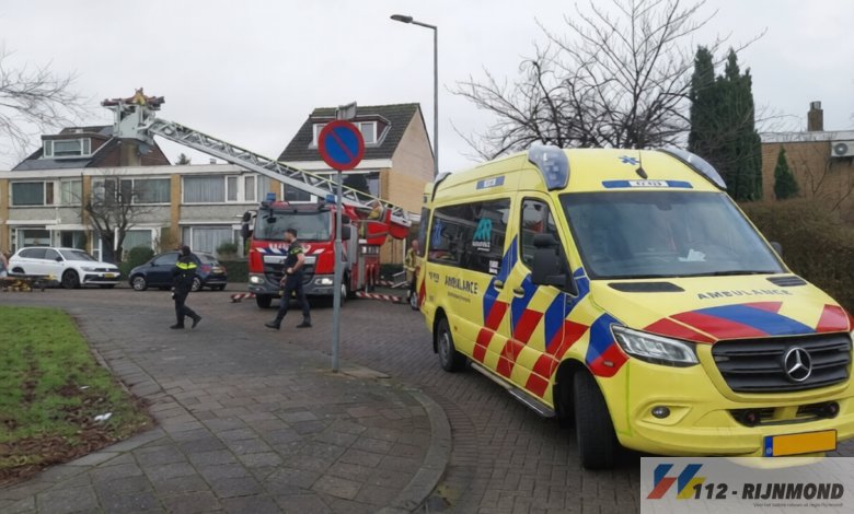 Een oudere man was op het dak van een aanbouw geklommen en kwam hierbij vervolgens ten val. De man raakte gewond en kon iet met behulp van het ambulancepersoneel door zijn verwondingen van het dak komen.