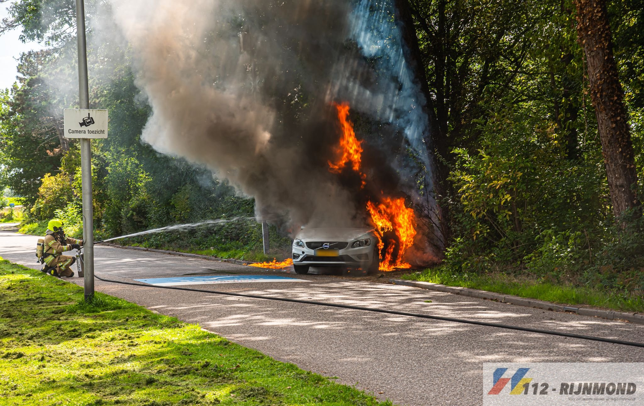 Doordat de auto hybride was, is een dompelbak vol met water ter plaatse gevraagd waarin ze de auto in kunnen takelen en het vuur verder kan doven. De dompelbak bleek uiteindelijk toch niet nodig te zijn. De brand in de bosschage was snel geblust. Bij de brand zijn geen gewonde gevallen.