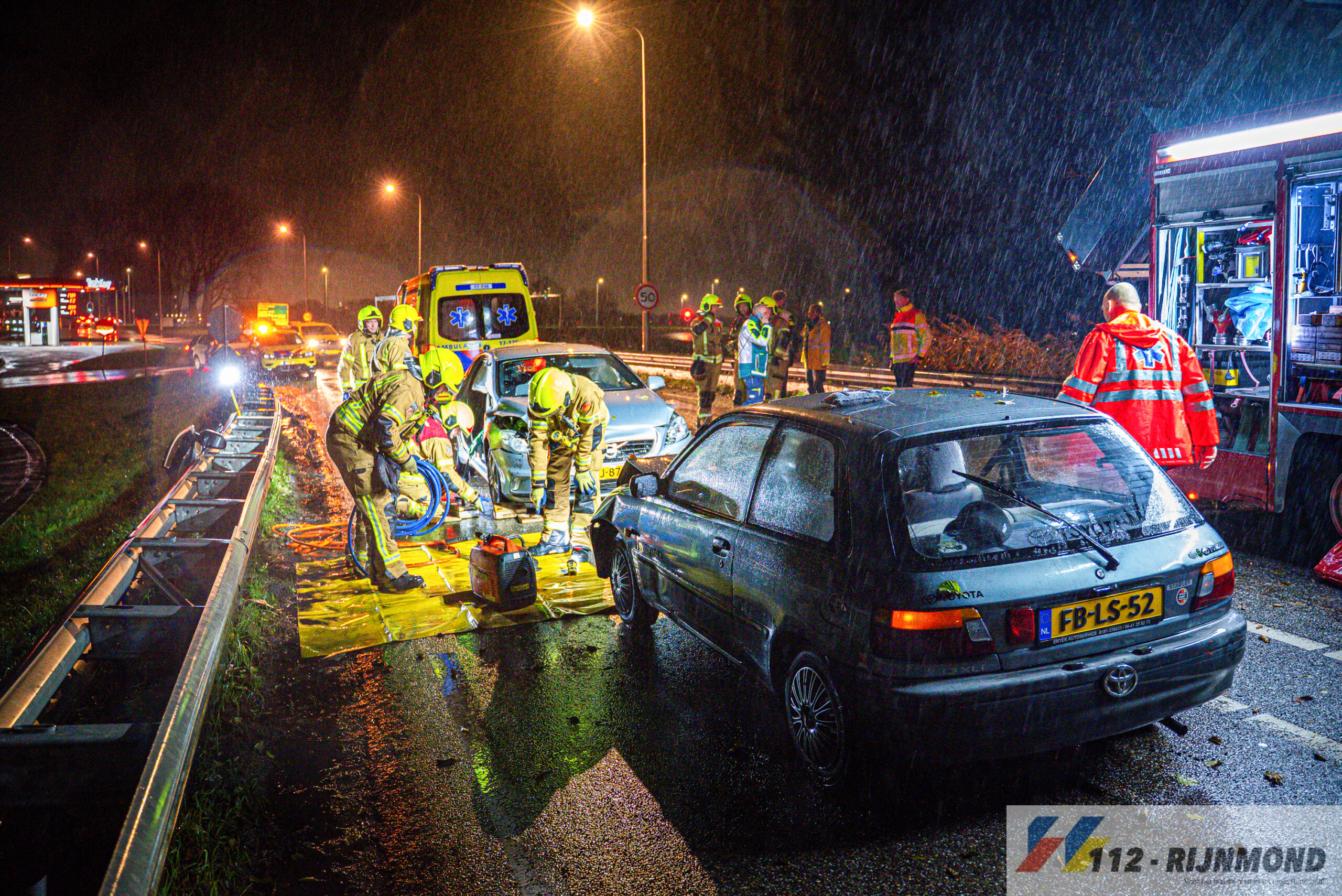 De brandweer heeft een van de automobilisten uit zijn voertuig moeten bevrijden, waarna deze met spoed met een ambulance is overgebracht naar het ziekenhuis.