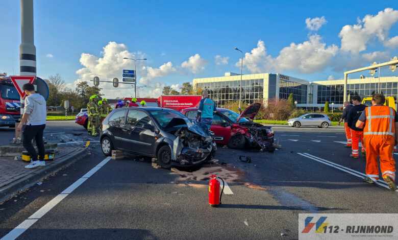 Twee auto’s kwamen rond 14.38 uur hard met elkaar in botsing. Hulpdiensten waaronder de brandweer rukte uit voor de hulpverlening.