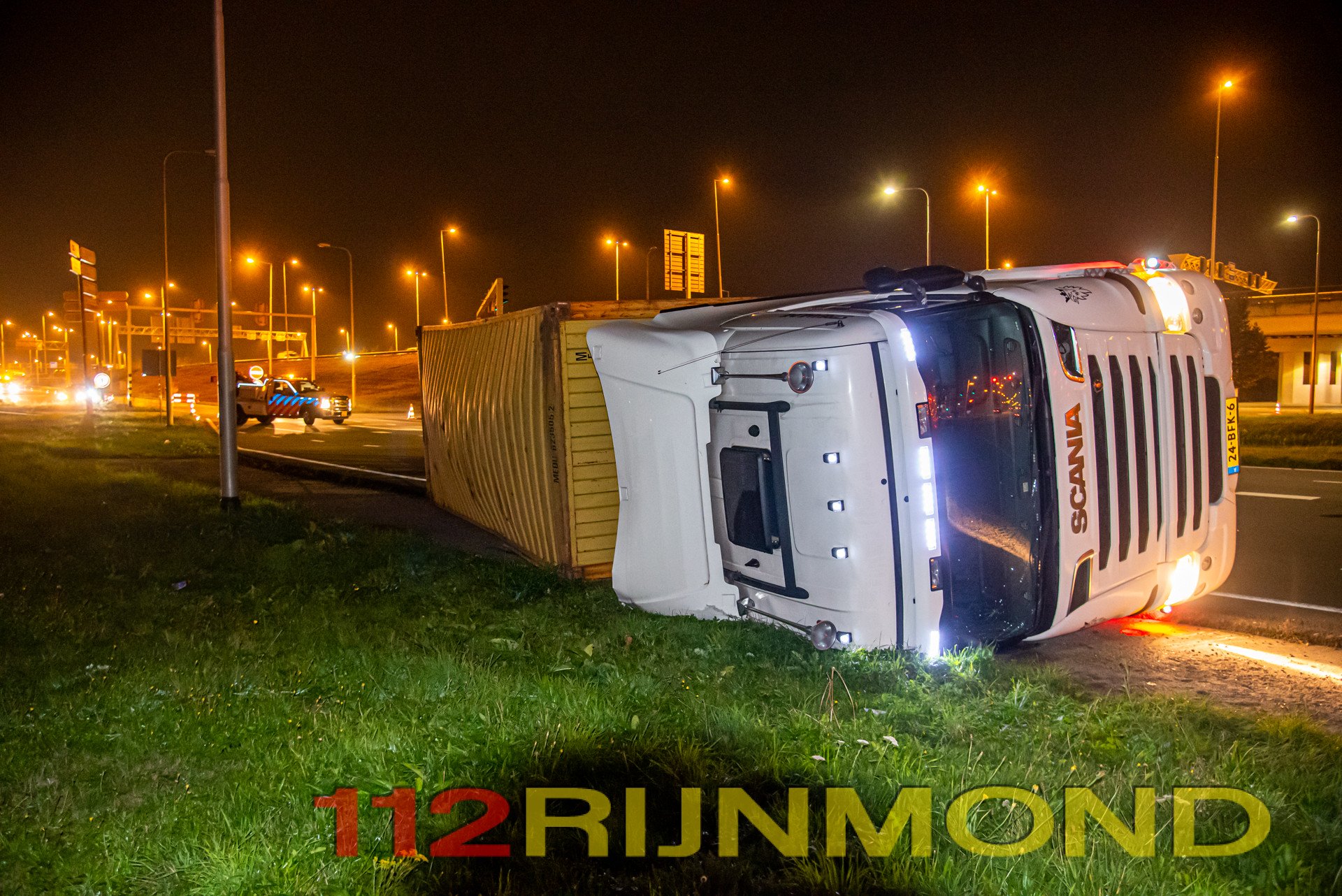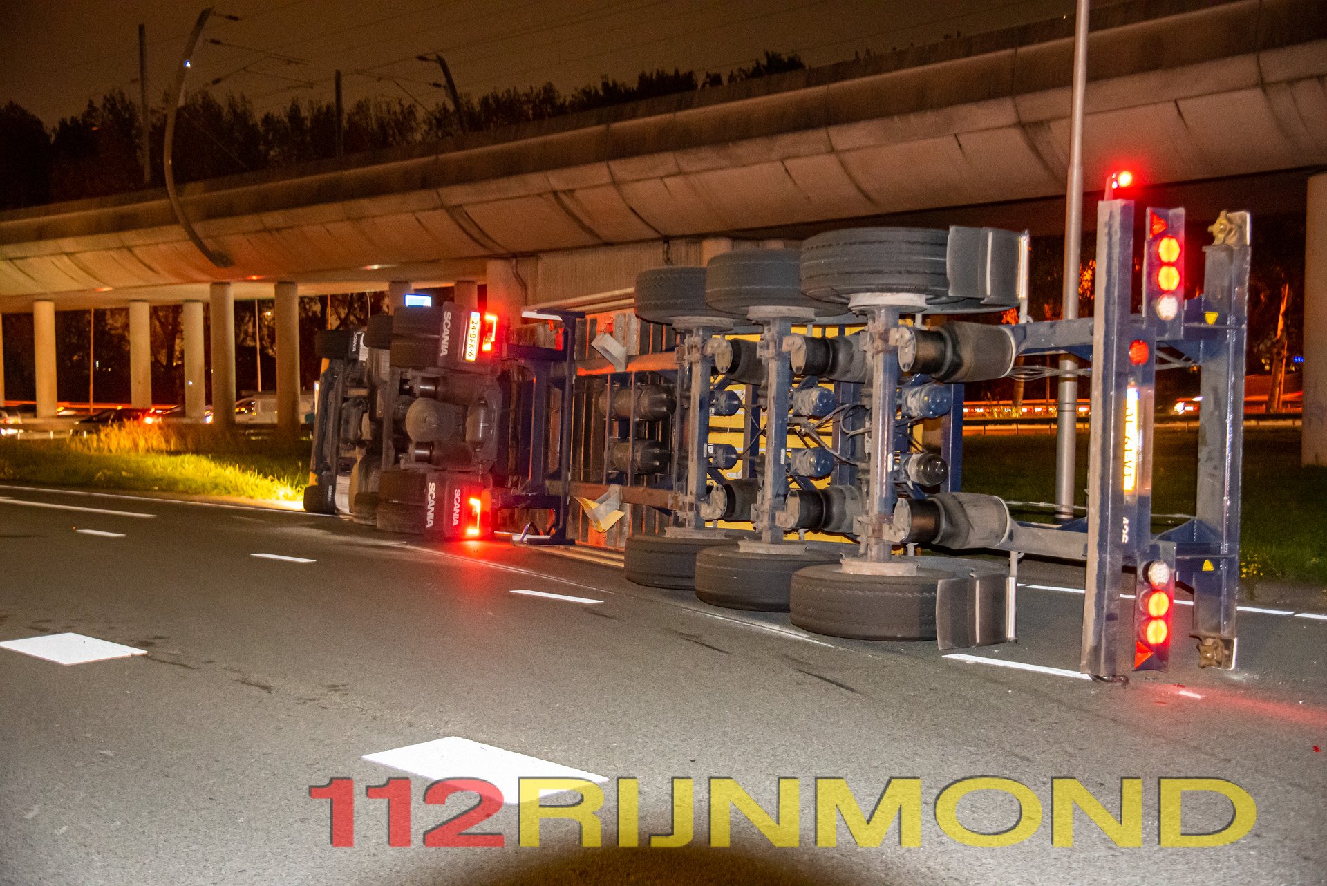 Vrachtwagen met trailer vliegt uit de bocht | Groene Kruisplein Rotterdam