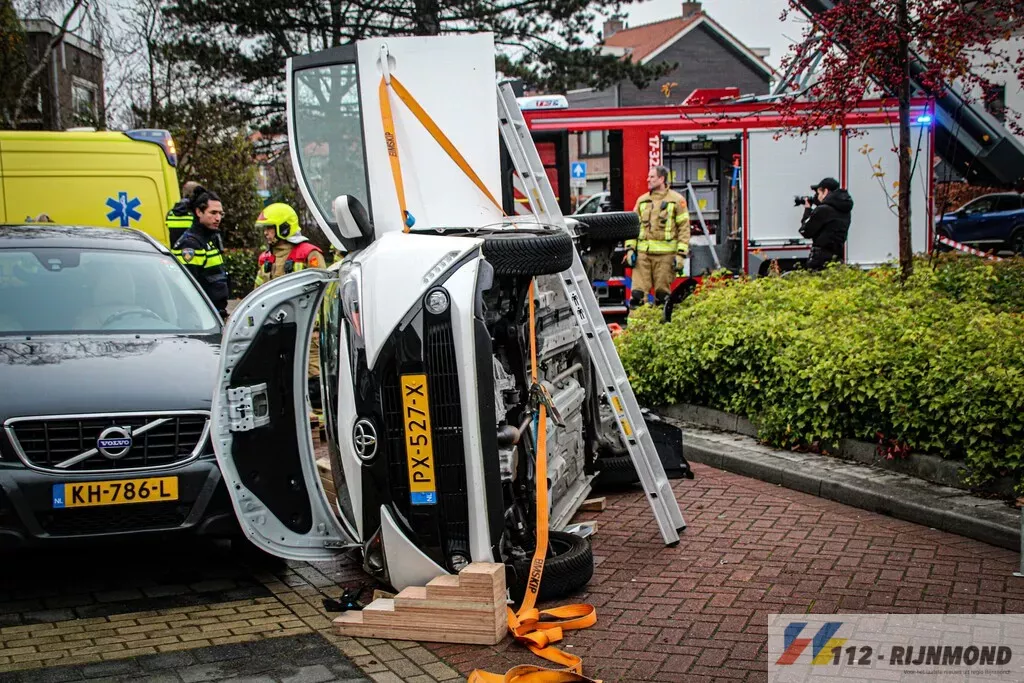 Een vrouw verloor rond 11.50 uur de macht over haar auto stuur en botste vervolgens tegen een geparkeerde auto aan. Door de botsing ging de auto van de vrouw op zijn kant en kon zij deze niet meer zelfstandig verlaten.