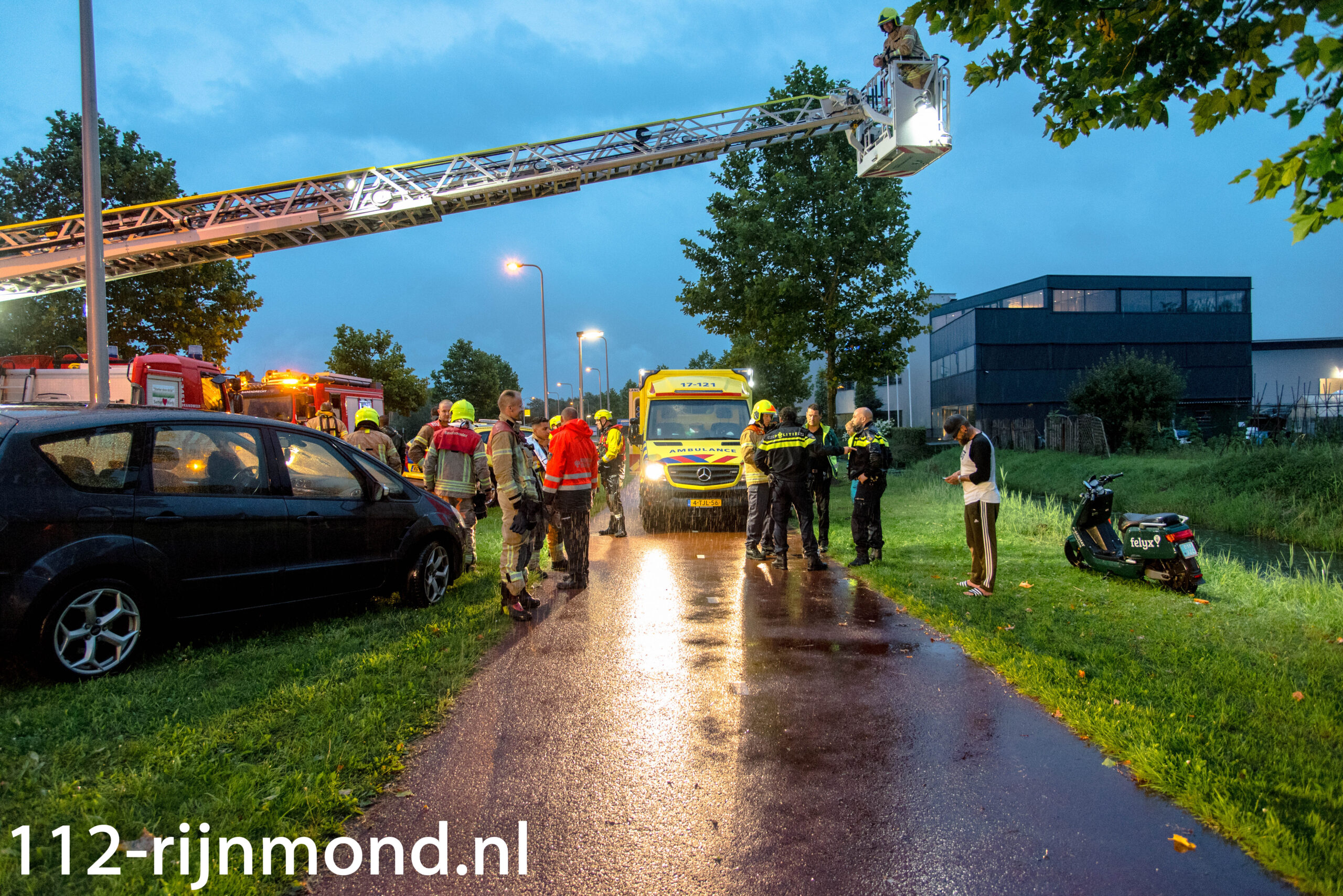 Omstanders hadden een huur scooter die nog aanstond bij een slootkant aan de Rhoonse baan aangetroffen. De omstanders zijn meteen het water in gegaan om te kijken of de bestuurder daar in was gevallen.