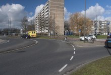 Zondagmiddag iets na 1 uur werder de hulpdiensten gealarmeerd voor de zoveelste aanrijding op de rotonde aan het Nieuwlandplein in Schiedam. Dit keer was een meisje op de fiets geschept door een automobilist. Het slachtoffer is verzorgt in de ambulance en overgebracht naar het ziekenhuis. De politie droeg zorgt voor de fiets van het meisje.